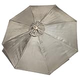 Enjoy dining or just relaxing outdoors under the Strathwood St. Thomas umbrella. The 8-foot-tall umbrella has a 9-foot diameter when opened and is designed to fit in most 2-inch table holes. Or the large umbrella stands alone in a Strathwood umbrella base sold separately. The tan shade screen is made of polyester fabric that resists rain, UV deterioration, and mildew, while the pole is made of aluminum and the eight-point rib system is steel. The fabric color matches cushions in Strathwood's St. Thomas furniture collections for a fully accessorized look. A crank handle attached to a white nylon pulley rope enables secure raising and lowering of the umbrella. To prevent gusts from blowing the umbrella over, a vent in the top allows air to pass through yet keeps rain out. Topping the eight-foot shaft is a black plastic screw-on finial for a finishing touch. The umbrella weighs approximately 11 pounds.