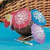 Paper Hibiscus Cocktail Parasols. Assorted colors. (1 gr./DB) 2" parasol on a 4" stick. Accessories not included.