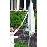 (More customer reviews)This umbrella cover replaced one that I had for over 10 years.The old one had a rod in it that enbaled you to lift the cover up over the top of the umbrella - a great feature for a short person.I searched and searched and this was the only one I could find that had the same feature, but slightly different.The cover itself is sturdy material and I can see it lasting at least 10 years.However, the rod is meant to be disassembled each time you put it on the umbrella, but you can just leave it assembled and tuck it in next to the umbrella before you zip it shut.Also, tie a string of some sort to the zipper - makes it easier to pull it down unless you're really tall.