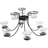 Lighten up your next outdoor gathering or Barbeque.Boston Warehouse's Chandelier Umbrella Lights will add light and ambiance to any outdoor setting.Lights fit around patio umbrella creating soft candlelight while taking up little room.Metal with 9 glass votive holders. Takes 9 votives candles not included.