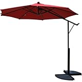 (More customer reviews)I was happy to pay the high dollar price for this umbrella because of the sunbrella fabric.When I received the item, the base is a cross base and nothing like the picture.I put it together and it kept falling over because of the unbalanced base.This product is poorly made and not worth the money.