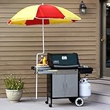 Grill umbrella keeps you coolwhile you cook. You ll be made in the shade withthis oversized umbrella, which shields you from the heat and glare of the summer sun. It also keeps you and your food from getting wet if it starts to drizzle.Attaches securely with included clamp. Metal, nylon. Adjustable height,51 2' diameter.