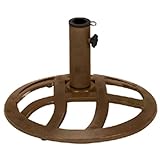 This hammertone bronze cross weave cast iron umbrella base. 2" opening fits most umbrellas.