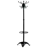 This elegant stand has plenty of hooks available for hanging coats, wraps, hats and caps all year round. Keep umbrellas organized and close at hand with the storage space provided in the base.Featuring beautiful styling and a powder-coat finish, our coat rack is constructed from substantial cast iron to withstand the test of time. Each stand is especially sturdy and heavy to resist tipping. Be sure to buy one today. Actual size is 76"Hx20"D
