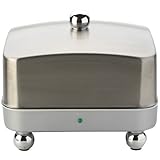 Enjoy perpetually creamy, smooth, perfectly spreadable butter with this ingenious and attractive dish. Equipped with an adjustable temperature-control knob designed to hold butter at the preferred consistency without the hassles of microwaving or refrigeration, the unit's quiet, low-power fan and ventilation outlets enable constant and efficient heating or cooling, which means no more drippy puddles or rock-hard sticks of butter. Even more, its removable, dishwasher-safe butter tray affords quick and thorough cleanup between uses, while its tight-fitting lid makes it easy to transport to barbecues, picnics, potlucks, and other events. Additional highlights include a green "on" indicator light; an adapter for connecting the unit to a main power supply; and decorative, vibration-resistant balled feet with rubber guards that prevent scratching or damage to tabletops, sideboards, or counters. Available in a variety of distinguished colors, the temperature-controlled butter dish measures approximately 7 by 7 by 8 inches and carries a one-year limited warranty.