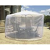 Sold as one unit. (1 unit = each.) 90" H. Fits most 9' to 9-1/2' umbrellas. Double zipper entry doors. White netting, natural trim. Boxed. Manufacturer number: 50101050. SKU #: 8189680. Country of origin: China. Distributed by Ace Trading - Wf Gazebos.